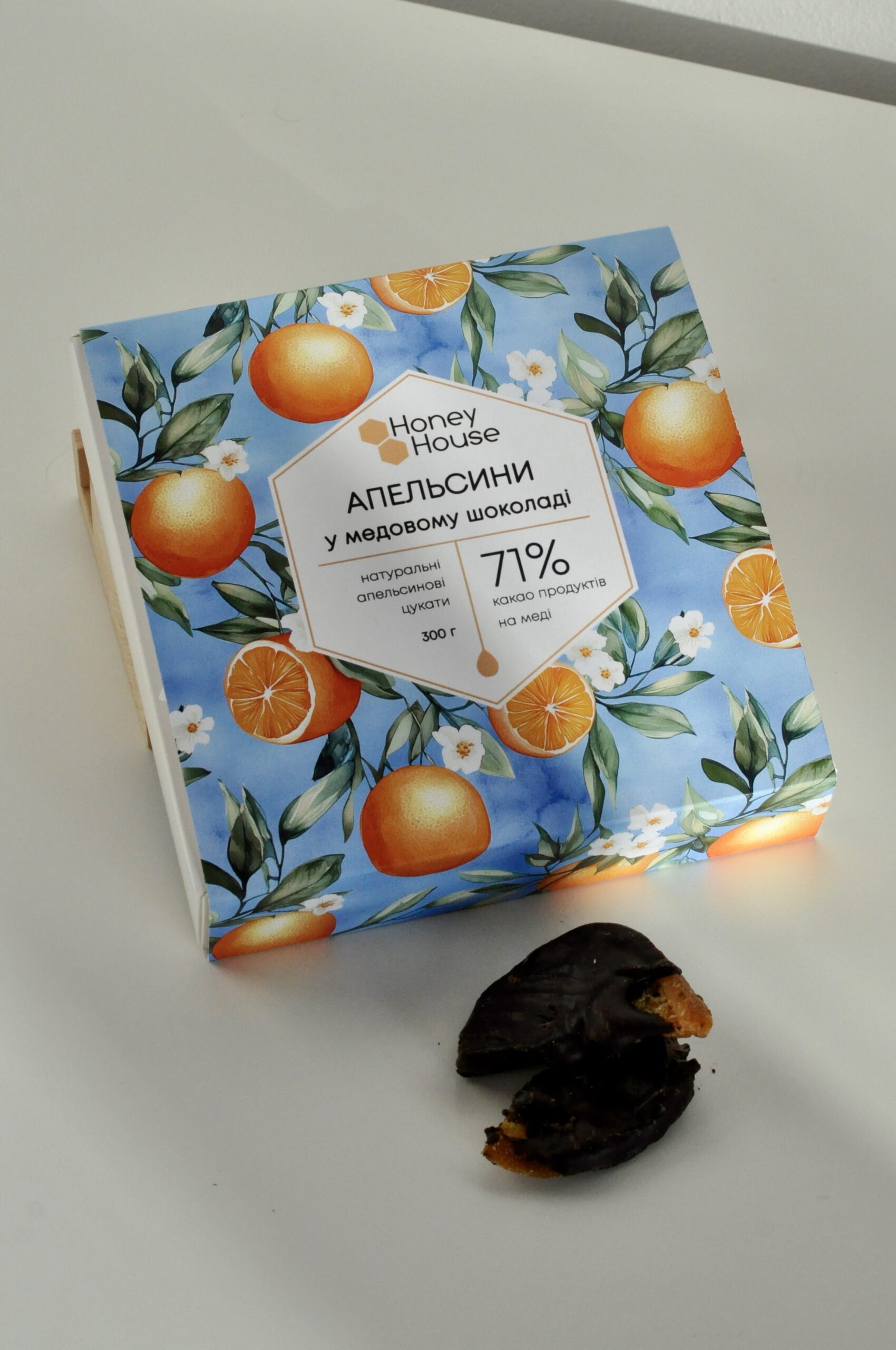 Склад: апельсин цукати, медовий шоколад (какао терте, масло какао, мед натуральний, бурбонська ваніль).
